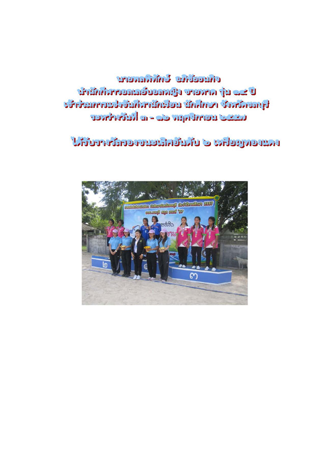 ชื่อผลงาน : รางวัลรองชนะเลิศอันดับ 1 การแข่งขันทักษะทางคอมพิวเตอร์ ระดับชั้นมัธยมศึกษาปีที่ 1-3 โครงการแข่งขันทักษะวิชาการ ระดับภาคตะวันออก ประจำปีการศึกษา 2558 ณ ตำนานป่ารีสอร์ท ต.บ้านเพ อ.เมืองระยอง จ. ระยอง
